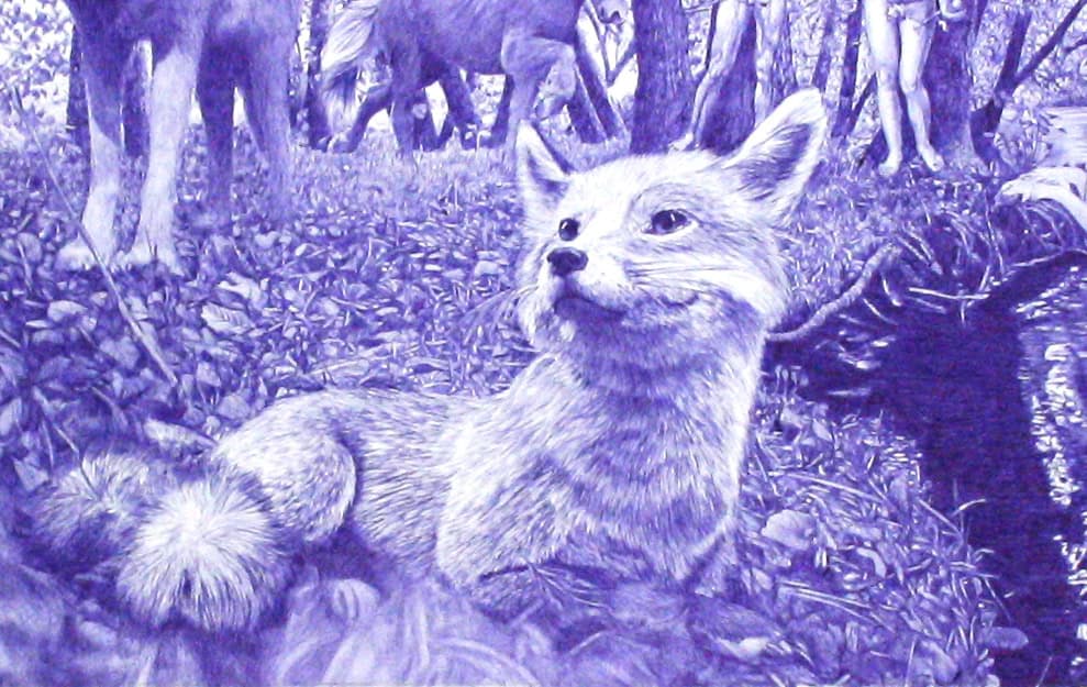 dessin stylo à bille sur photo, 80×80 cm