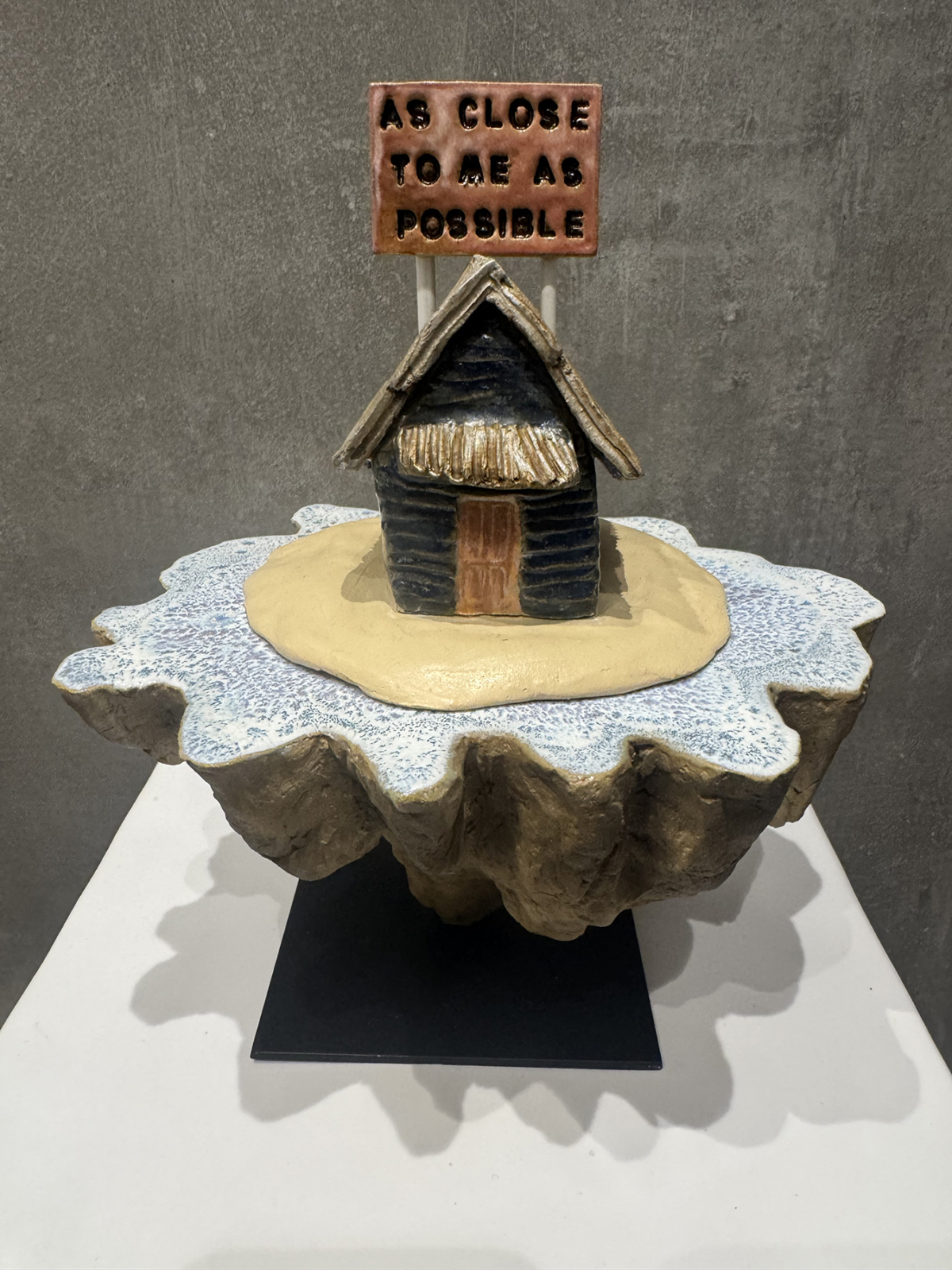 Iles miniatures suspendues, constructions minutieuses, par leurs réalisations plastiques et formelles, les sculptures composées de multiples matériaux, font de leurs créateurs les artisans d’un monde utopique au sens propre « lieu qui n’est pas ».